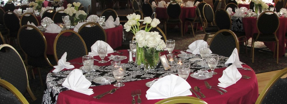The venue fee is all-inclusive for both the wedding and reception. Access is allowed from 9:00 AM until midnight. There are no additional charges for table cloths, cloth napkins, chivari chairs, china, silverware, glassware, and centerpieces. (see venue pricing for details) Our caterers do not use disposables for dinner or beverage service.